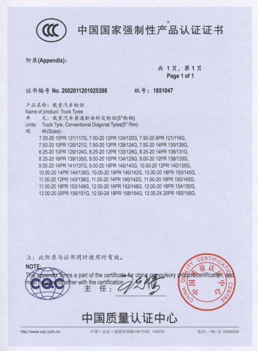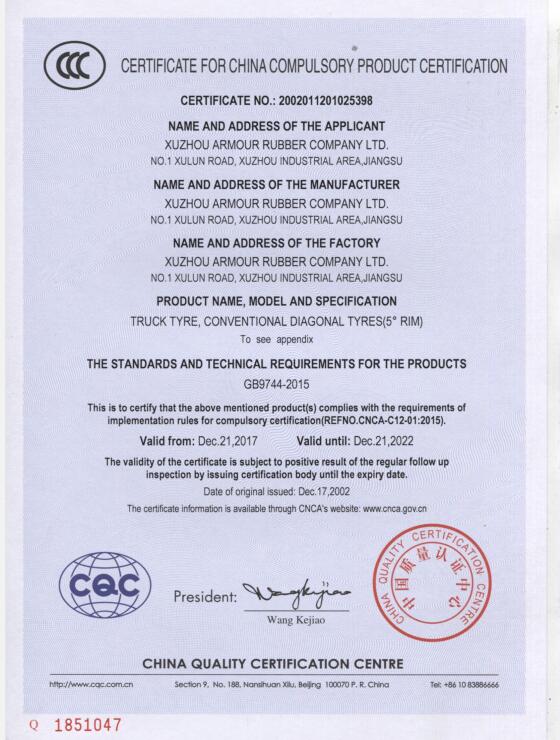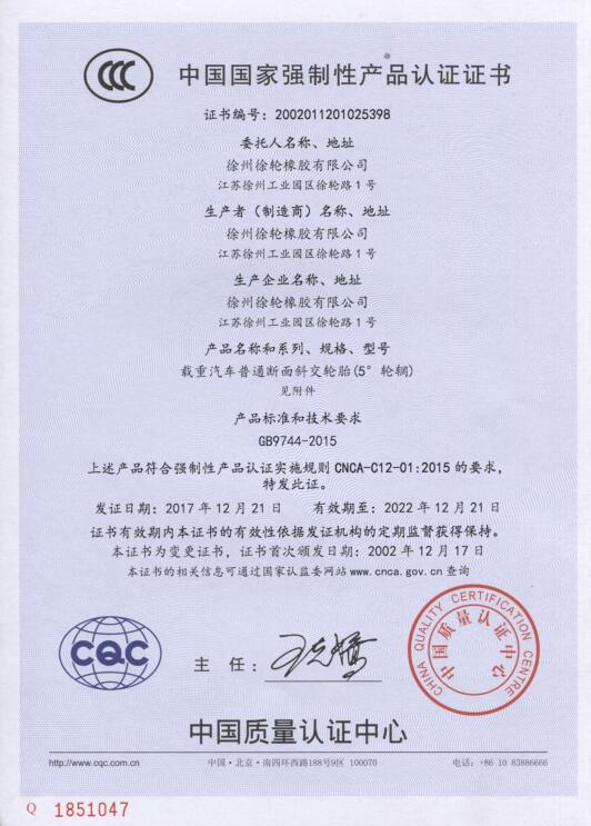 3C证书-载重轮胎